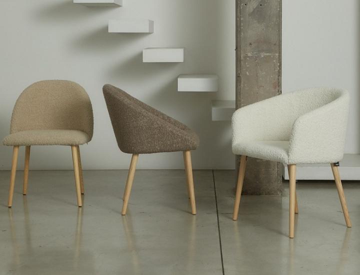 Piètements disponibles en tube d'acier, en bois naturel (hêtre ou wengé), base pivotante 4 branches ou à 5 branches avec élévateur à gaz en aluminium chromé ou peinte. Le dossier est composé d'un rembourrage en polyuréthane expansé ignifuge à double densité avec insert en tôle d'acier de 1,2mm d'épaisseur. L'assise est composé d'un rembourrage en polyuréthane expansé ignifuge, avec double insert en bois multicouche.