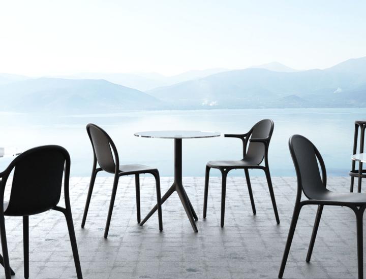 CHAISE BROOKLYN L'assise, le dossier, le pietement et les accoudoirs sont en polypropylène. Il s'agit d'un mobilier d'exterieur ou d'intérieur. Il est possible de prendre la version "Revolution" qui utilise du polypropylène recyclé issu de filets de pêche, plastique en tout genre et bouteilles collectées dans les mers.