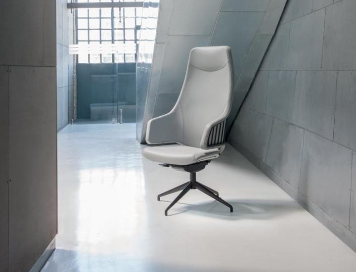 L'assise composée de polyuréthane flexible avec mousse injectée à froid ignifugée à double densité avec une âme d'acier à haute résistance Le dossier composé de polyuréthane flexible avec mousse injectée à froid ignifugée à double densité avec insert structurel en polyuréthane rigide. Structure tubulaire en acier haute résistance de 1,5 mm d'épaisseur sur 11 mm de diamètre, finition chromé et peinte en poudre polyester gaufrée. 2 types de mécanismes : mécanisme synchrone avec capteur de poids, inclinaison de l'assise et du dossier, 4 positions prédéfinies. Mécanisme synchrone avec réglage latéral de l'intensité, inclinaison de l'assise et du dossier, 5 positions prédéfinies. Base pivotante à 4 ou 5 branches en aluminium moulé avec finition poli ou peinte. Disponible avec roulettes ou patin