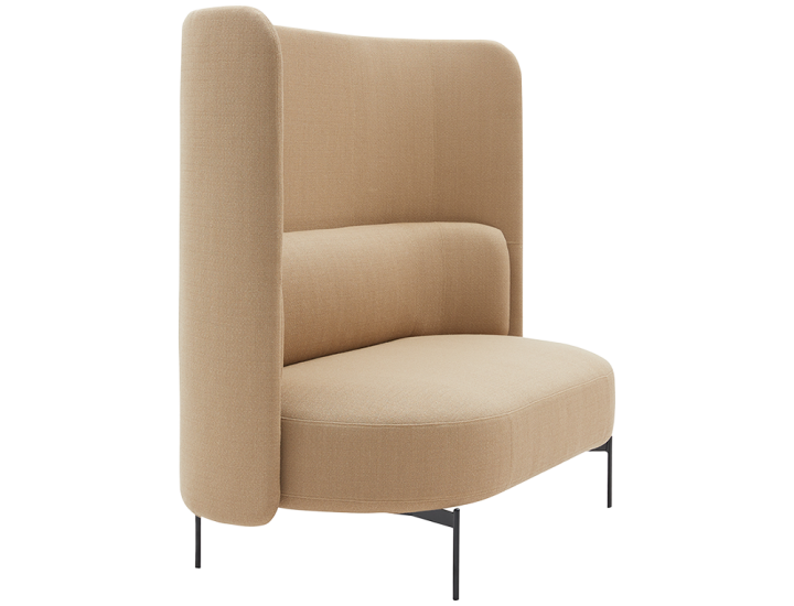 Le canapé reprend les mêmes principes que le fauteuil bas, sur une échelle plus généreuse. Sa coquille protectrice et son structure légère le rendent idéal pour les salons ou espaces collaboratifs. Il invite à la détente collective, tout en restant visuellement léger grâce aux pieds fins et au dossier courbe qui souligne une allure harmonieuse.