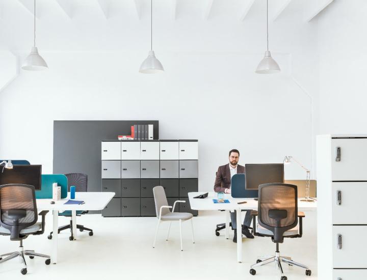 Plusieurs configurations sont disponible, en 3, 4 ou 5 casiers. Structure : mélaminé de 18 mm d'épaisseur avec chant ABS, Les façades sont en mélaminé de 18 mm d'épaisseur avec stratifié HPL. Le Top : en mélaminé de 28 mm d'épaisseur avec chant ABS. Serrure 1 point avec clé. OPTION AVEC PLUS VALUE : serrure electronique, serrure à code ou verrouillage par carte. La base est pourvu de vérins de réglagesur une course de 5 mm. Il sera nécéssaire de spécifier la couleur de chaque portes