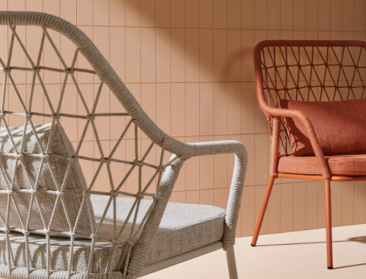 Le design de la chaise PANAREA évoque un paysage méditerranéen, tant dans la couleur utilisée qui s'apparente aux couleurs chaudes de la brise d'un littoral marin. Le tissage qui recouvre sa structure renvoi au filet de pêche ainsi que le tressage de son dossier dont l'élégance de sa courbe rend son aspect accueillant et chaleureux.