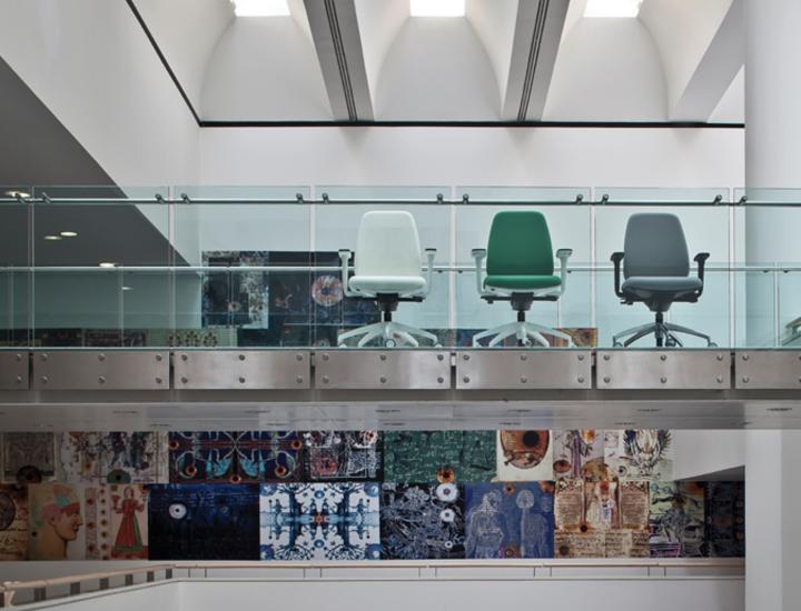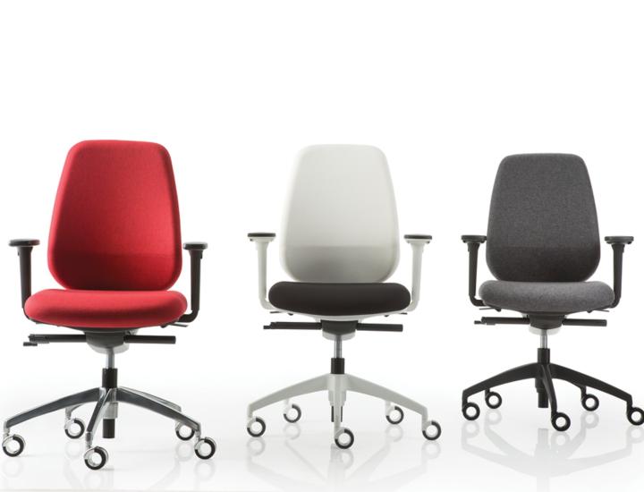 L'assise : dispose d'un rembourrage moulé à haut confort en mousse avec un insert en polypropylène, couvercle en polypropylène avec finition anti-rayures et le dossier réglable en hauteur : dispose d'un rembourrage moulé à haut confort en mousse avec un insert en polypropylène, couvercle en polypropylène avec finition anti-rayures. Les accoudoirs sont en polyuréthane mou et une structure en nylon. Les accoudoirs sont disponibles en 2D (réglage hauteur et largeur) ou en 4D (hauteur, largeur, profondeur, inclinaison) Mécanismes : Synchrone avec translateur intégré. La base est en nylon renforcé avec de la fibre de verre, disponible en noir ou blanc ou en aluminium poli. Le piètement est disponible en 5 branches avec les roulettes auto-freinées en caoutchouc classique ou roulette ouvertes avec roulement à billes.