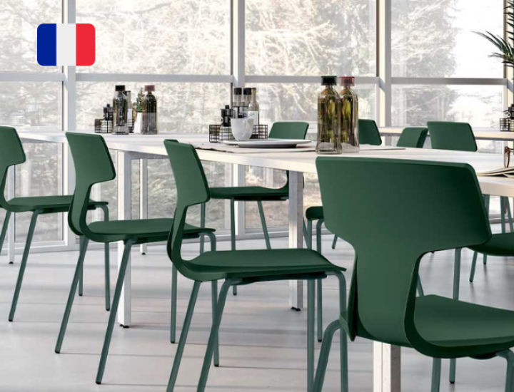 La chaise TARA possède un dossier souple qui vous assure un confort immédiat. Grâce à sa forme, il st possible de les empiler facilement pur optimiser le rangement et le stockage. Elle est disponible en noir, vert foncé et aubergine.